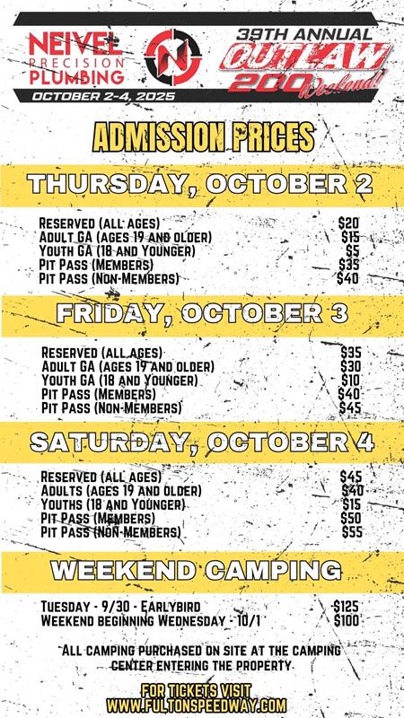 FULTON, NY (October 2, 2025) - The 39th edition of Fulton Speedway’s prestigious Outlaw 200 Weekend roared to life on Thursday night, with four action-packed feature events. In the E&V Energy Novice Sportsman Outlaw Championship, Jacob Gurecki topped a field of 30 entries....more