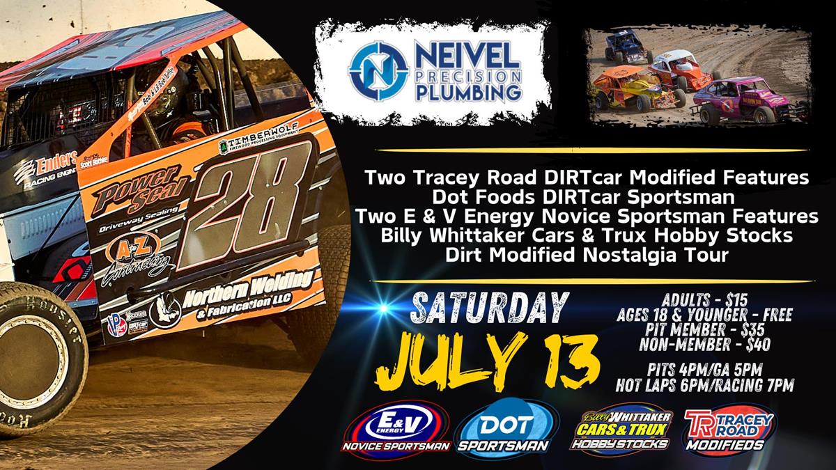 Seven feature events are set to hit the track, including the Tracey Road DIRTcar Modifieds, DOT Foods DIRTcar Sportsman, Billy Whittaker Cars & Trux Hobby Stocks, E & V Energy Novice Sportsman. Added to the fun this week, the Dirt Modified Nostalgia Tour brings their Vintage modifieds with unlimited engines to the track. Both the Tracey Road DIRTcar Modifieds and E & V Energy Novice Sportsman will have double features with make-up races from the June 8 rainout on tap.