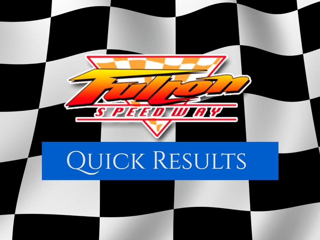 DOT Foods DIRTcar Sportsman A Feature Results (25 Laps): 1. 51-Jimmy Moyer (10) 2. 4 -Emmett Waldron (13) 3. 38 Jr. -Jason Parkhurst Jr. (12) 4. 410 – Mike Fowler (17) 5. 20K – Kyle Perry (1) 6. 51X – David Moyer (9) 7. 18H – Brian Harber (8) 8. 63 – Teddy Clayton Jr. (16) 9. 72 – Hunter Hollenback (25) 10. 39S – Josh Fellows (5) 11. R1 – Riley Rogala (15) 12. 10J – Josh Livingston (23) 13. 71 – Tim Falter (3) 14. 11c – Austin Cooper (2) 15. 9D – Brett Draper (20) 16. 16X – Savannah Laflair (7) 17. 14 – Samuel Groom (24) 18. 06W – Dorian Wahdan (22) 19. 5G – Cale Gareau (6) 20. 0 – Tony Finch II (21) 21. 33Jr. – Clayton Brewer III (19) 22. 17A – Michael Button (11) 23. 83X – Brett Sears (18) 24. 44C – Gregg Carner (14) 25. 88 – Dave Kingsley (26) 26. 6 – Cody Manitta (4)